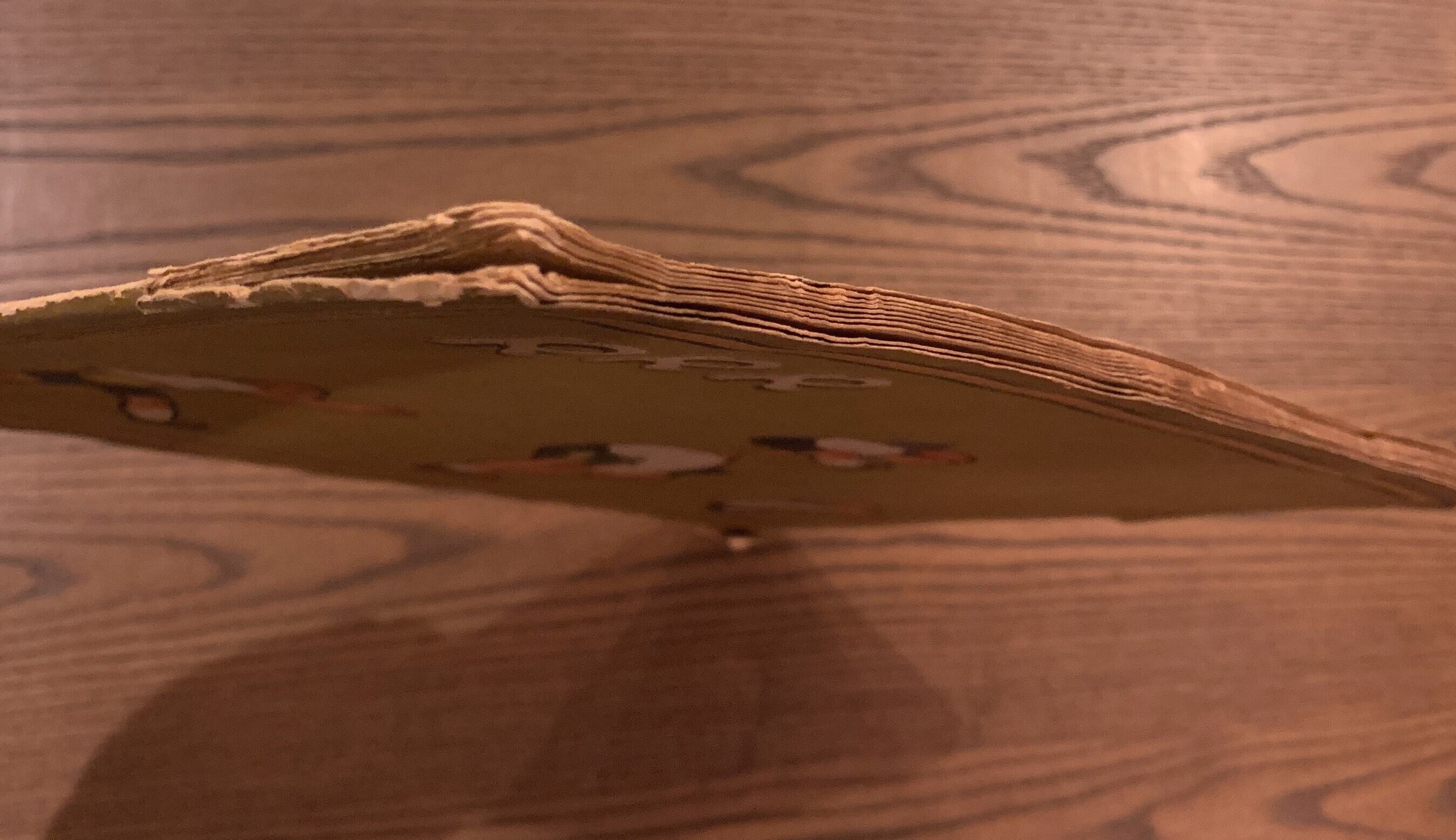 表紙にヤケとシミと傷みあり、背の上下欠け、経年のシミのあるページあり、状態並
